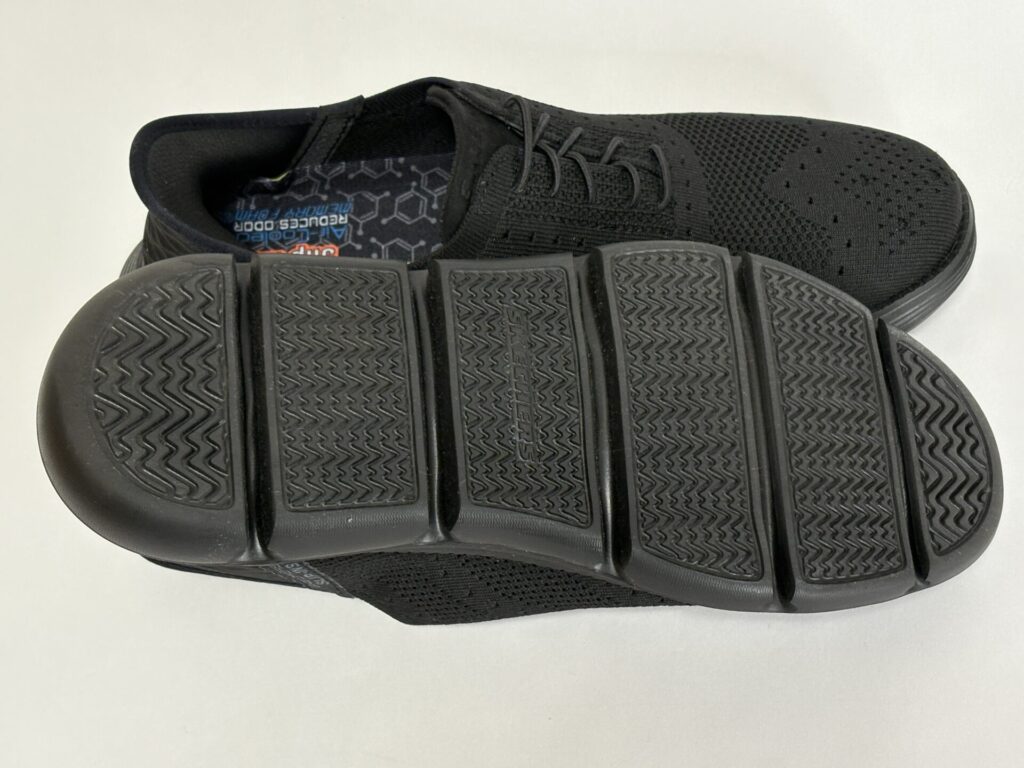アウトソールは実用性重視でスポーティさはないですが滑りにくさを意識したパターンで、通勤時も安心感があります。