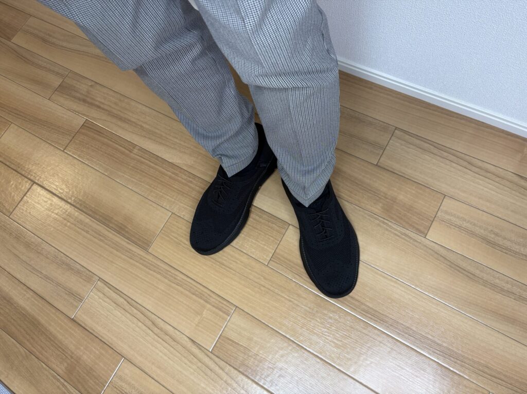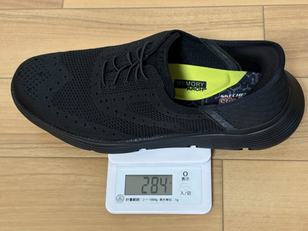 さらに、革靴(約350~500g)と比べて約284gと軽量なため、長時間の着用でも足への負担が少なく感じられます。