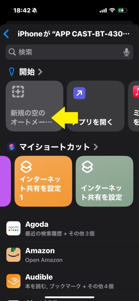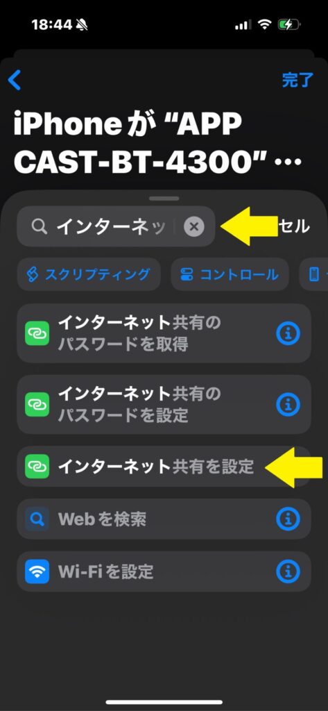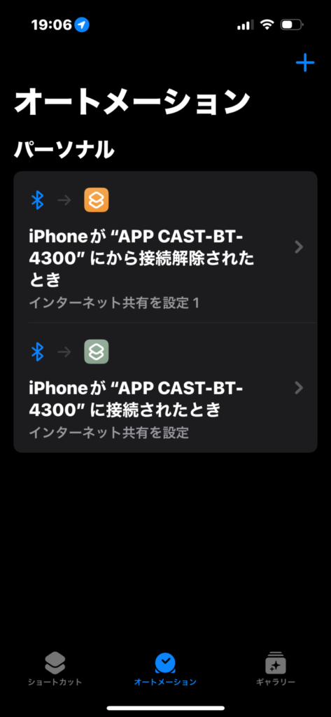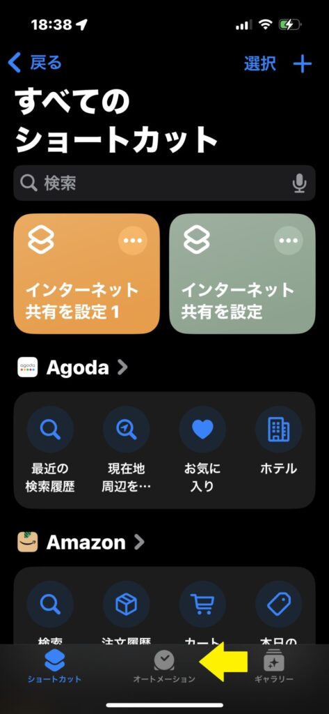 ここからはiphoneのインターネット共有を自動化する方法です。