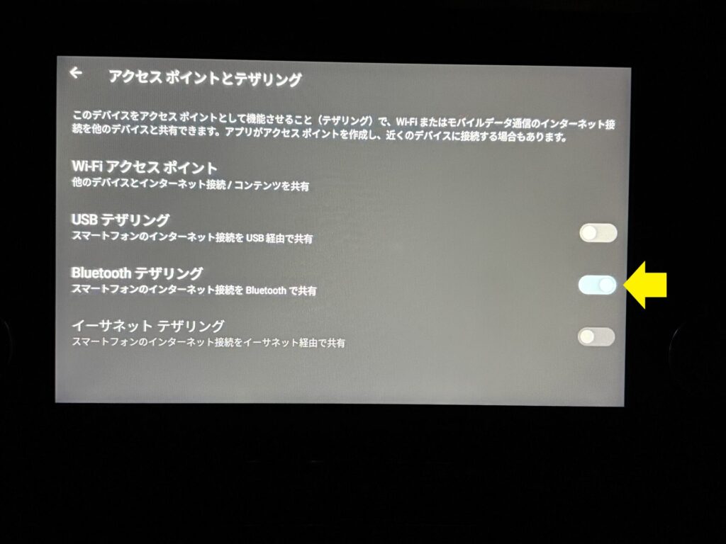 この設定をしておくと自動で車のエンジン始動でインターネット共有を「ON」。エンジンを切った時に(ナビの電源が切れると)インターネット共有を「OFF」にすることができます。