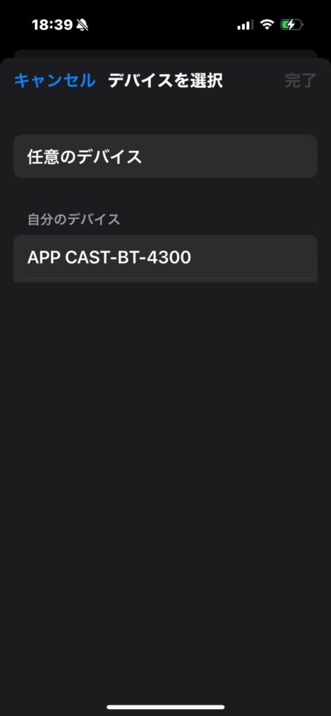 iPhoneの設定→Bluetoothをタップし「APP CAST-BT-4300」に接続します。