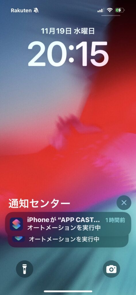 オートメーション機能が実行されるとホーム画面に通知が表示されます。