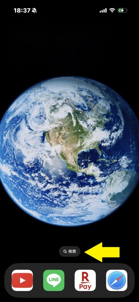 ホーム画面の検索窓に「ショートカット」と入力します。